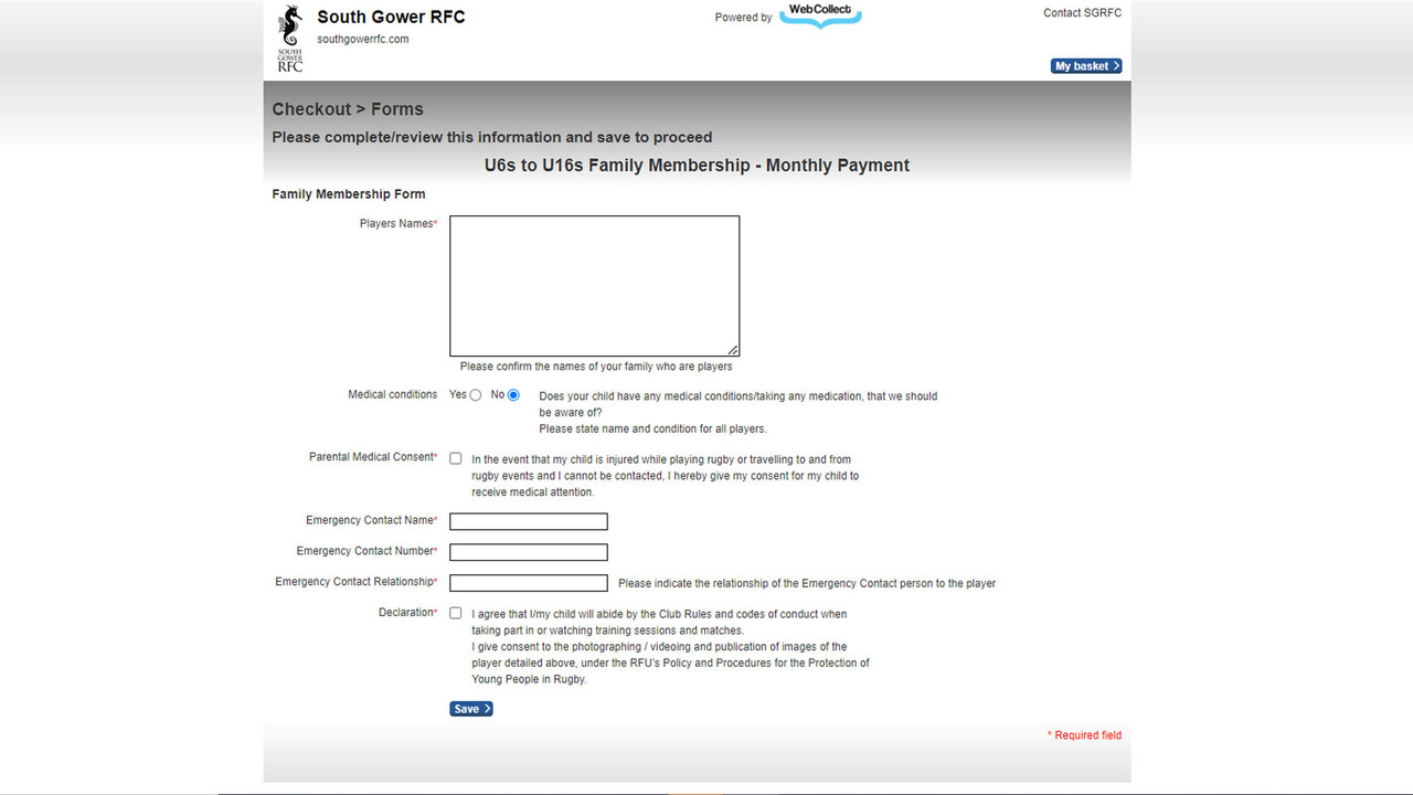 STEP 9: Complete the checkout form. If you’re registering a Family Membership and there is more than one player please list ALL PLAYER details and any medical conditions in the boxes. You should also separately notify your coaches of any medical conditions they should be aware of.