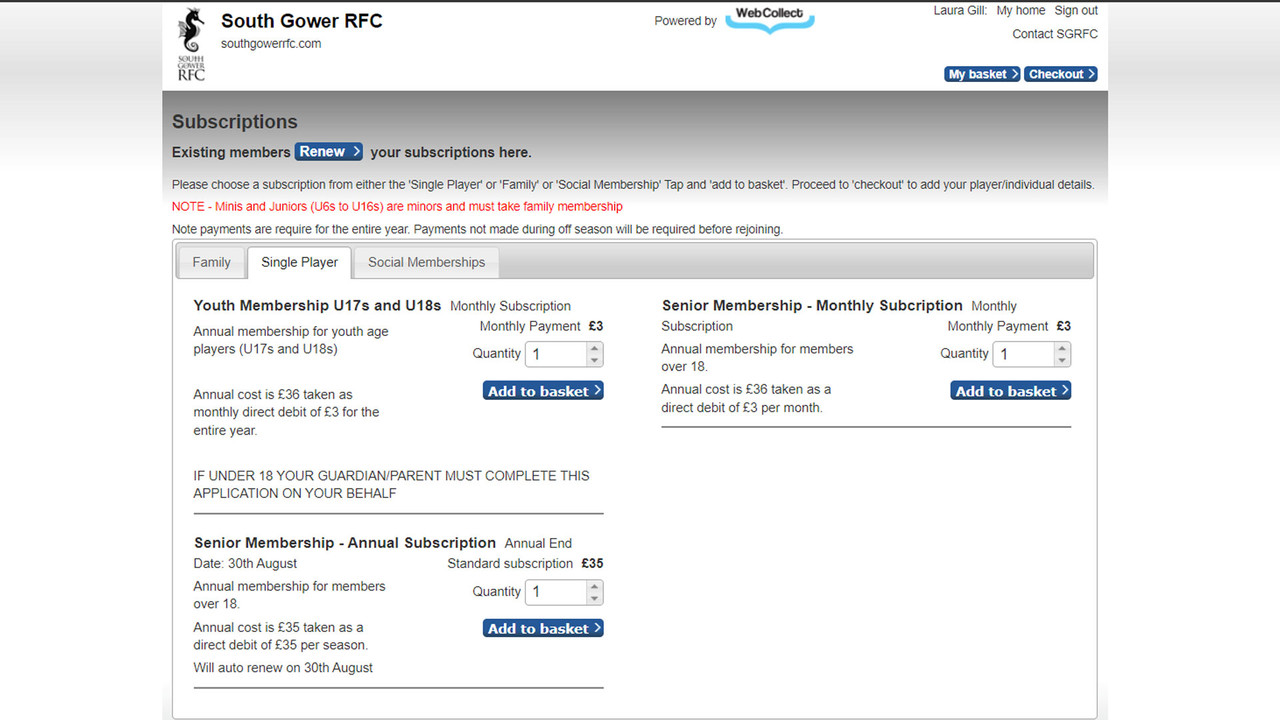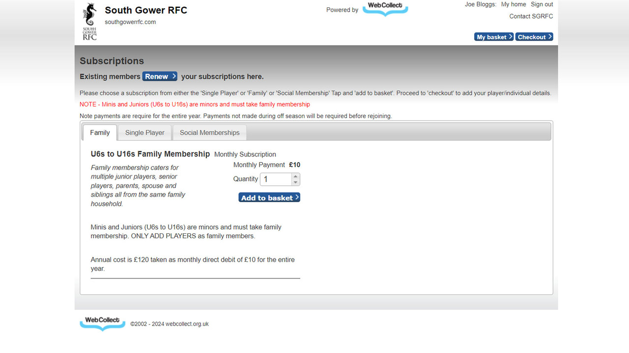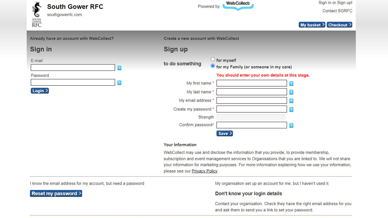 STEP 1: Sign up for membership by visiting https://webcollect.org.uk/sgrfc