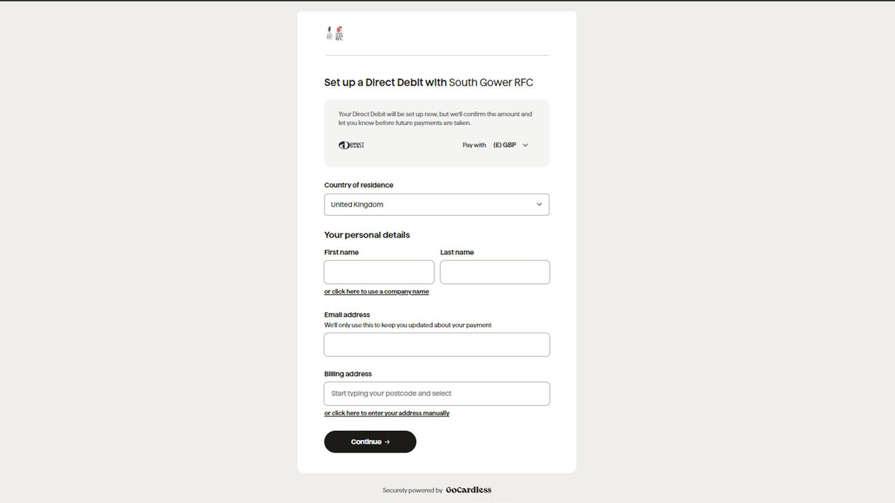 STEP 12: You will receive an email from sgrfc@webcollect.com confirming your membership order and a separate email from GoCardless when your payments go through.